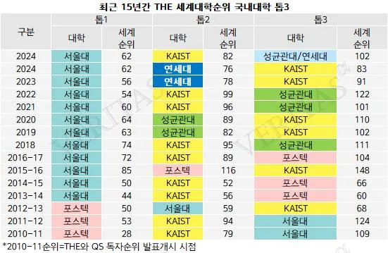 THE 순위 한국 대학 현황