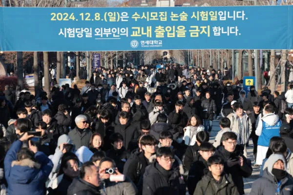 논술시험 당일에는 많은 수험생과 학부모의 차량으로 인해 학교 정문 일대가 상당히 복잡해집니다. 매년 차에서 내려 뛰는 학생들이 많이 보일 정도로 교통 체증이 심합니다.