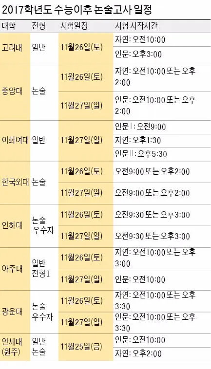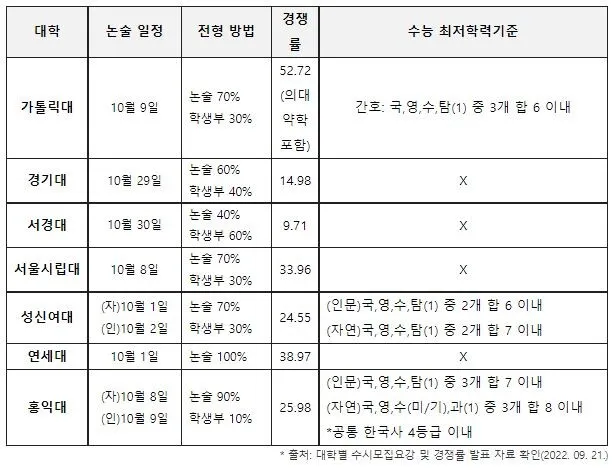 전국 주요 대학 논술 경쟁률 비교