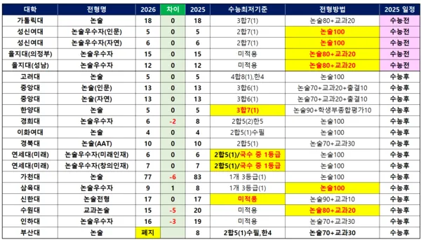 | 논술고사 (상경/인문) | 2025.11.22 | 토요일 | 상경 09:30, 인문 13:30 |