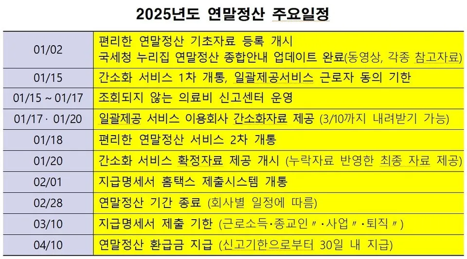 | 2025년 11월 초 | 연말정산 미리보기 서비스 오픈 (홈택스) | 근로자 |