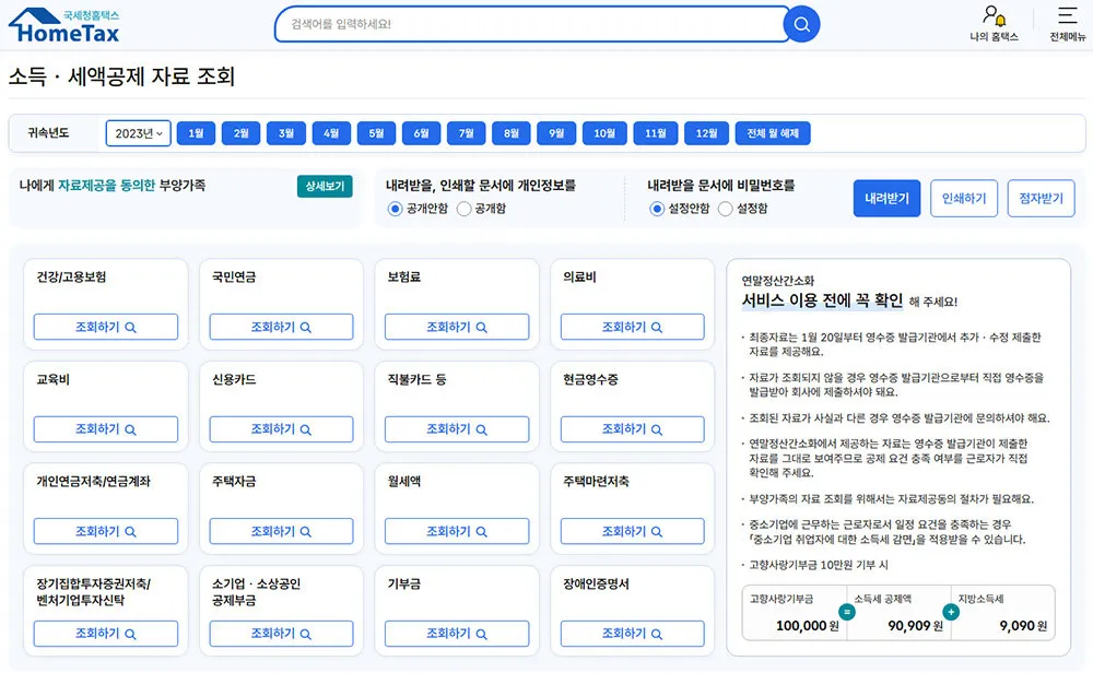 | 간소화 조회 | 2026년 1월 15일 이후 | 홈택스에서 간소화 자료 조회 가능 |