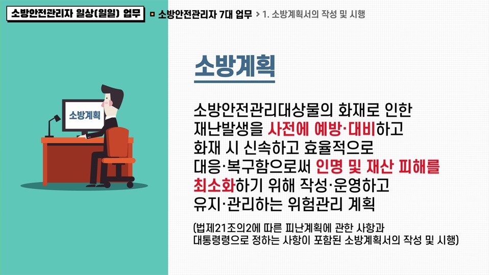 | 주요 업무 | 화재 예방, 소방시설 관리, 화재 대응 |
