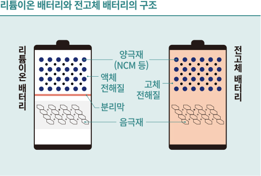 전고체 배터리는 기존 리튬이온 배터리의 액체 전해질을 고체로 대체한 차세대 배터리입니다. 이를 통해 에너지 밀도를 2배 이상 향상시키고, 화재 위험성을 현저히 감소시킬 수 있습니다.