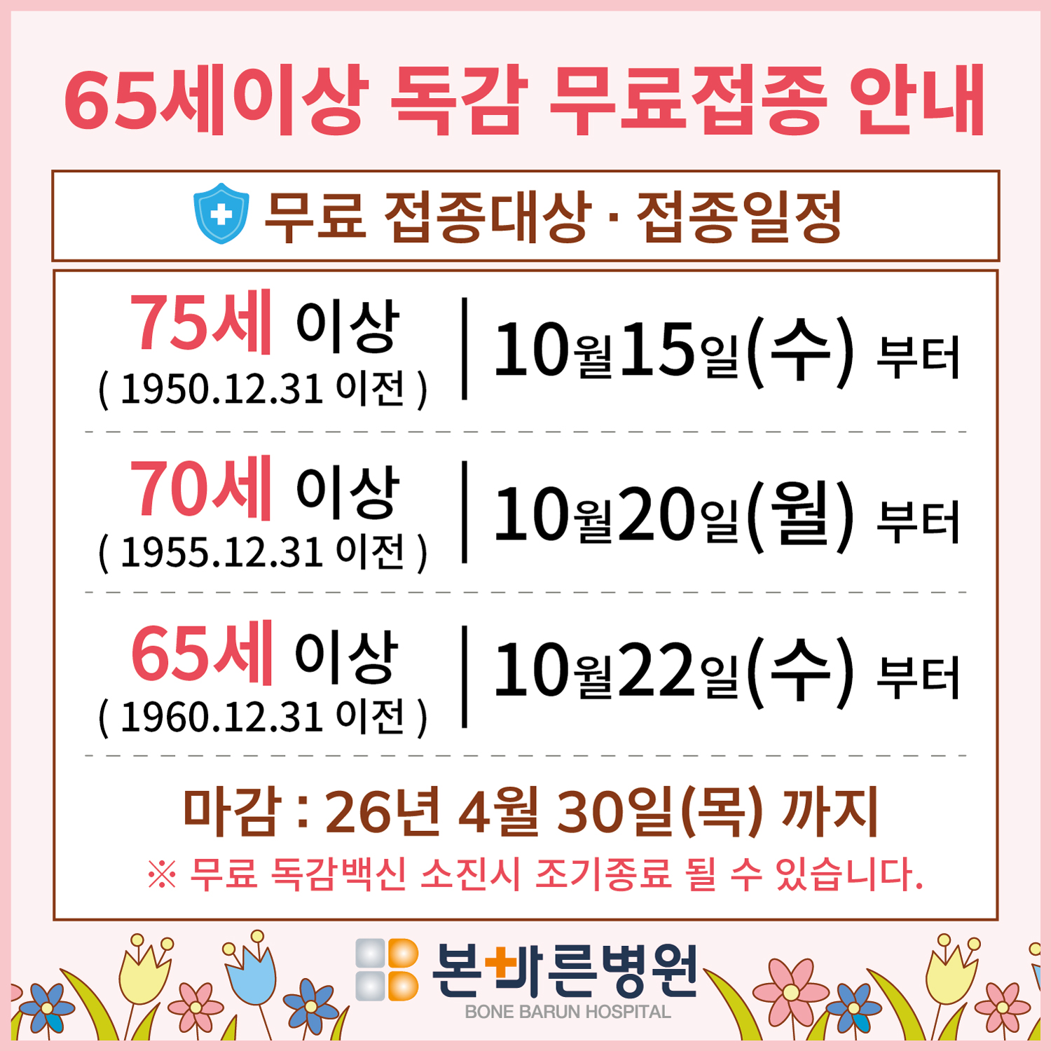 - 접종 시기: 매년 9월~10월 (유행 전)