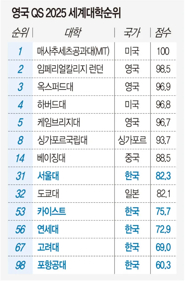 세계 대학 순위 2025